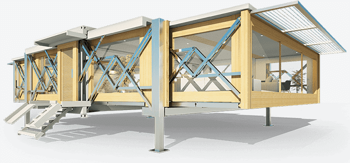 Aslında başlıkta ev ve ofis olarak tanımlasak da Ten Fold Engineering firması tüm betonarme yapıları taşınabilir hale görsel zenginlikle getiriyor. Ofisi istediğimiz yere taşıyarak çalışmak kulağa hiç de kötü gelmiyor. İngiltere merkezli firma geliştirdiği özel kinematik mekanizmalar ile sistemi treyler ile taşınabilecek standart konteyner boyutlarına getiriyor ve istenilen yerde kullanılmasını sağlıyor.